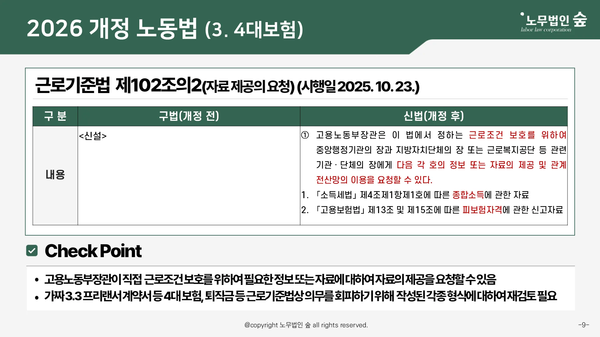 2026년 바뀌는 노동법 총정리 자료입니다.